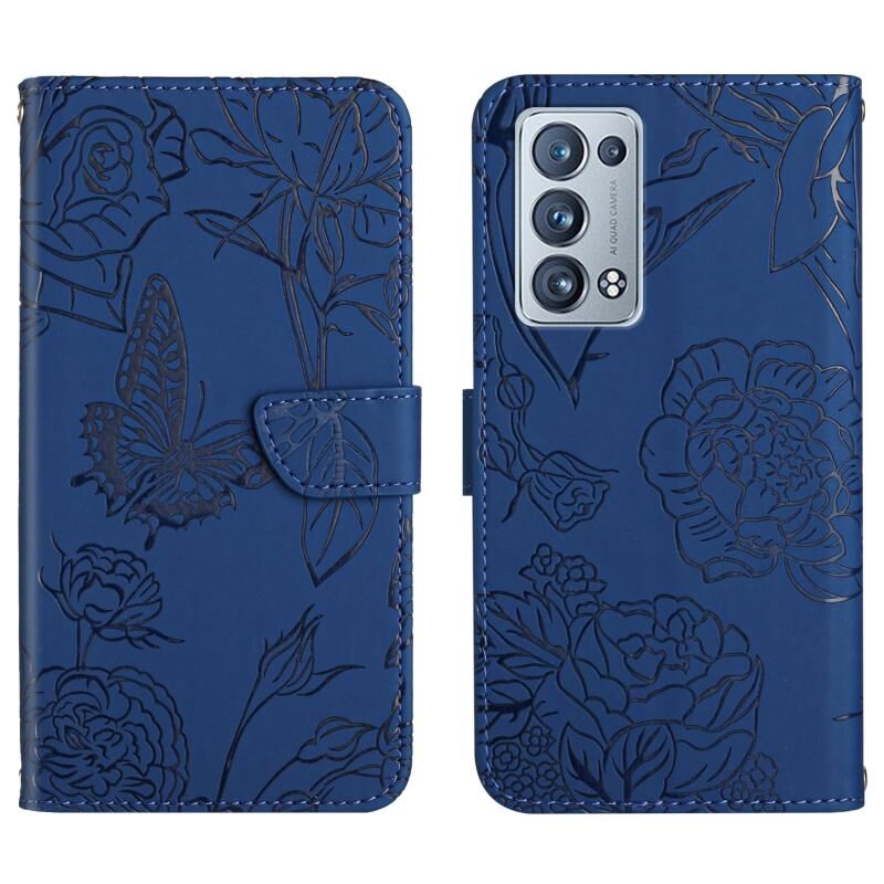 Θήκη τηλεφώνου από ανάγλυφο δέρμα με αίσθηση δέρματος για OPPO Reno6 Pro+ (Κόκκινο) - Πεταλούδα και Παιώνια.