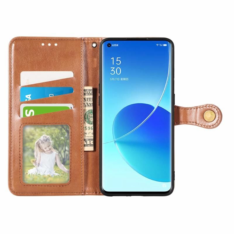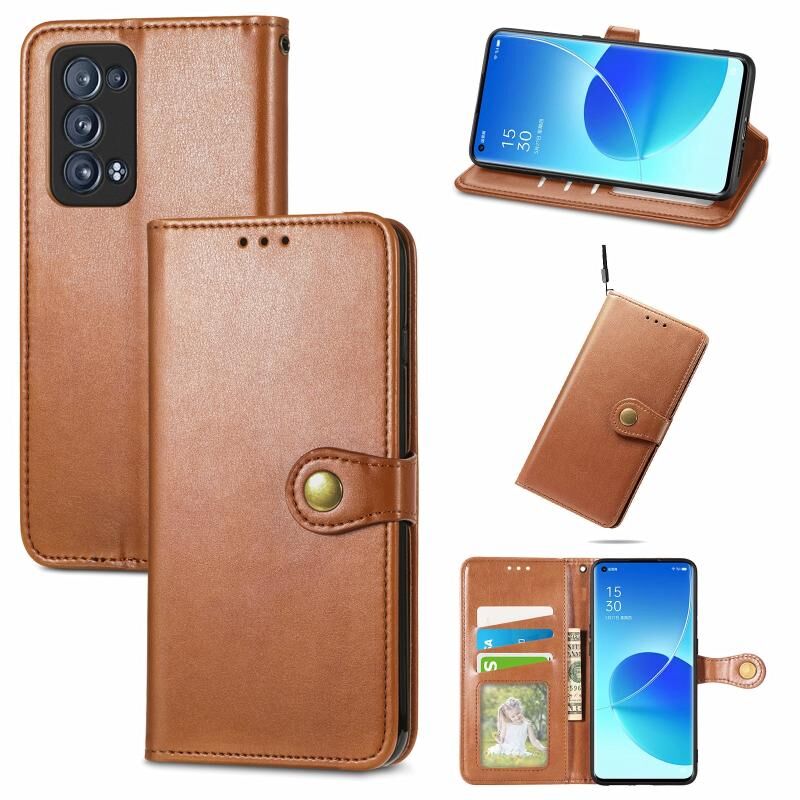 Για OPPO Reno6 Pro + Αμιγές χρώμα δερμάτινη θήκη τηλεφώνου πόρπη με κορδόνι & πλαίσιο φωτογραφιών & υποδοχή κάρτας & πορτοφόλι & λειτουργία Stand (Καφέ)