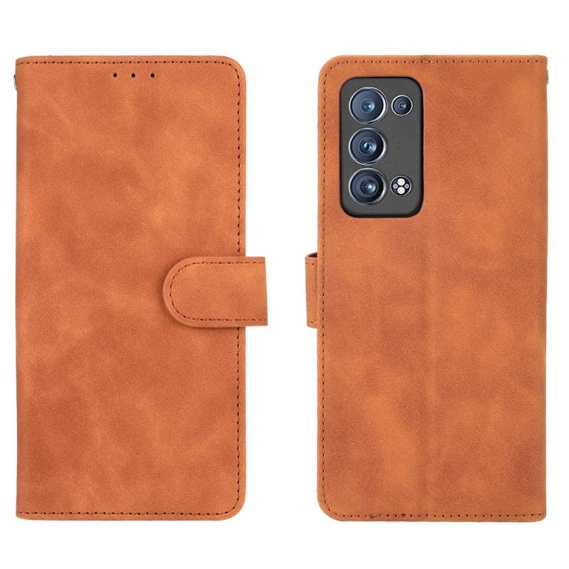 For OPPO Reno6 Pro+ Solid Color Skin Feel Magnetic Buckle Horizontal Flip Calf Texture PU Leather Case with Holder & Card Slots & Wallet(Brown)