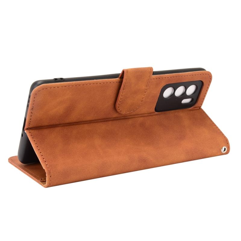 For OPPO Reno6 Pro Solid Color Skin Feel Magnetic Buckle Horizontal Flip Calf Texture PU Leather Case with Holder & Card Slots & Wallet(Brown) (AZNS)