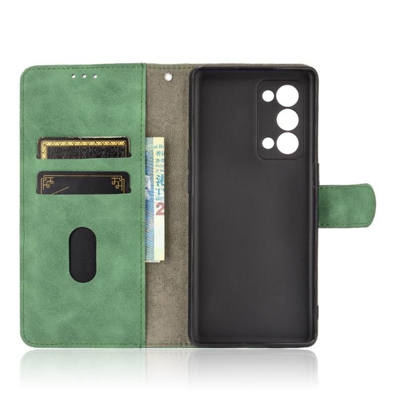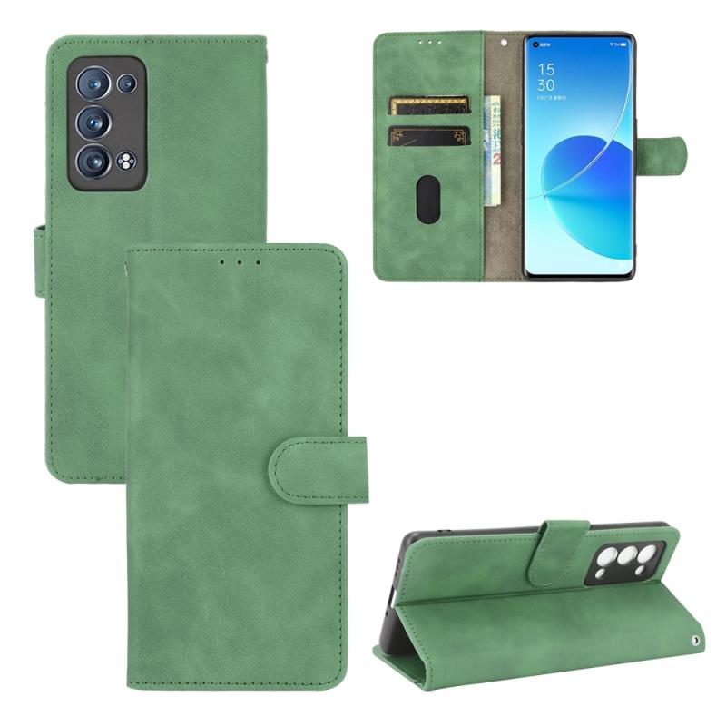 For OPPO Reno6 Pro+ Solid Color Skin Feel Magnetic Buckle Horizontal Flip Calf Texture PU Leather Case with Holder & Card Slots & Wallet(Green)