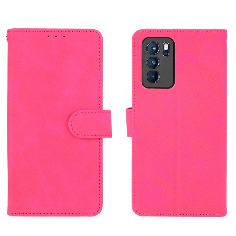 For OPPO Reno6 Pro Solid Color Skin Feel Magnetic Buckle Horizontal Flip Calf Texture PU Leather Case with Holder & Card Slots & Wallet(Rose Red) (AZNS)