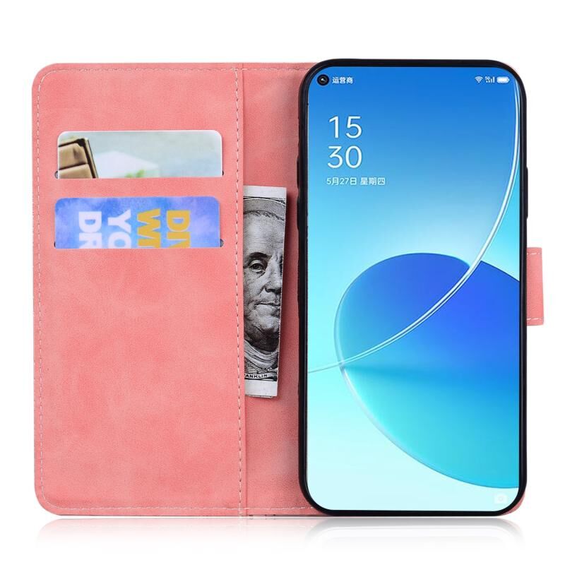 Θήκη τηλεφώνου από δέρμα με αναδιπλούμενο καπάκι και αίσθηση δέρματος για OPPO Reno6 σε ροζ χρώμα.
