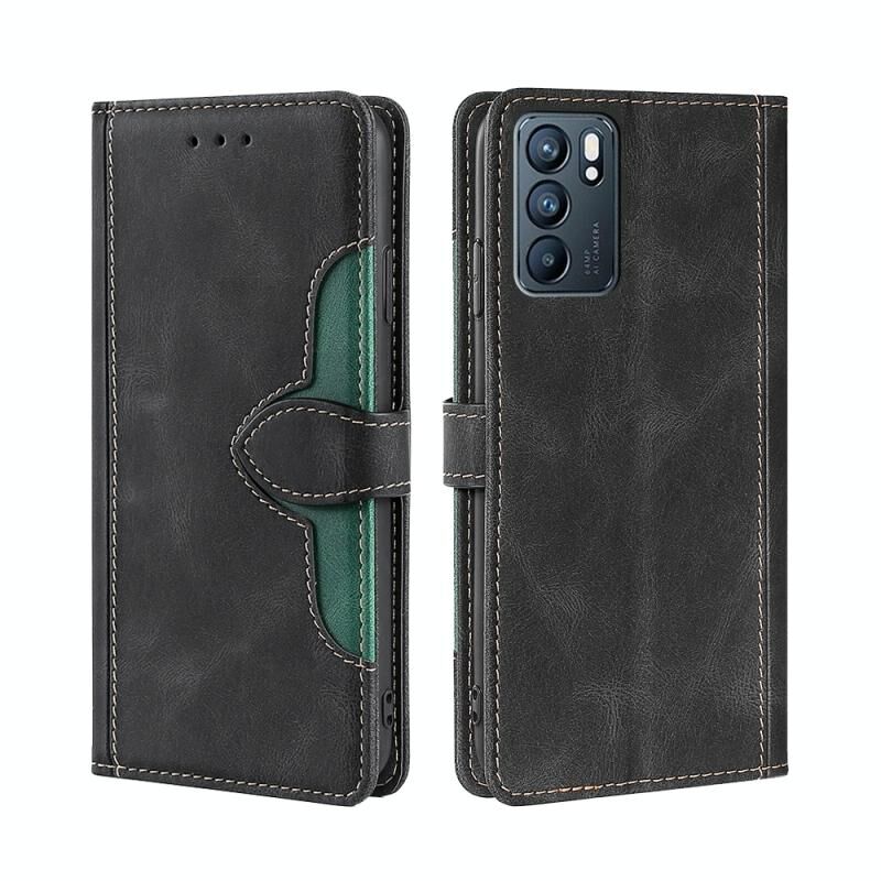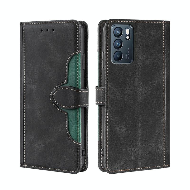 For OPPO Reno6 Skin Feel Straw Hat Magnetic Buckle Leather Phone Case(Black)