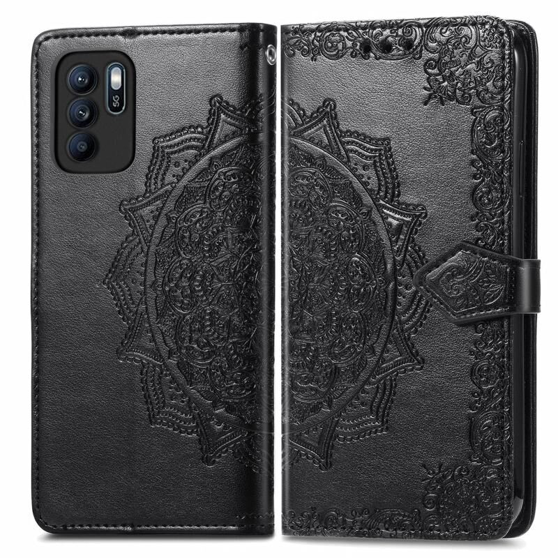 Για OPPO Reno6 Z Mandala ανάγλυφο μοτίβο οριζόντια Flip δερμάτινη θήκη με κάτοχο & υποδοχές για κάρτες & πορτοφόλι & κορδόνι (Μαύρο)
