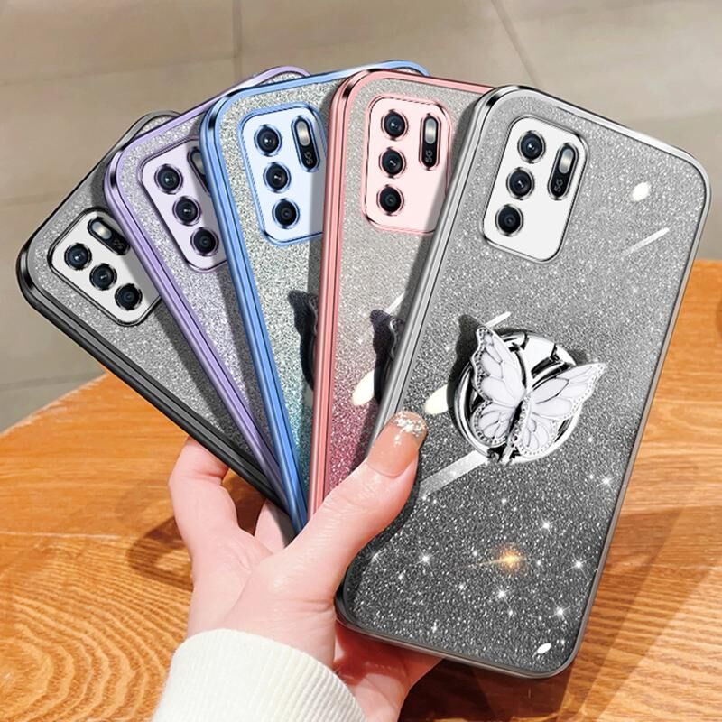 Θήκη κινητού τηλεφώνου OPPO Reno6 Z με επιμετάλλωση, διαβαθμισμένη λάμψη, πεταλούδα (Ροζ)