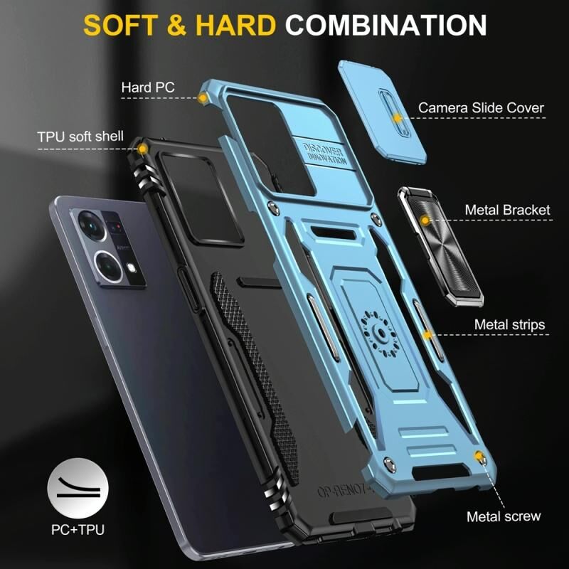 Για OPPO Reno7 4G Armor PC + TPU κάμερα ασπίδα τηλέφωνο υπόθεση (γαλάζιο)