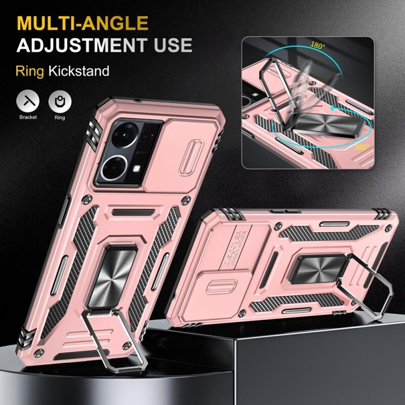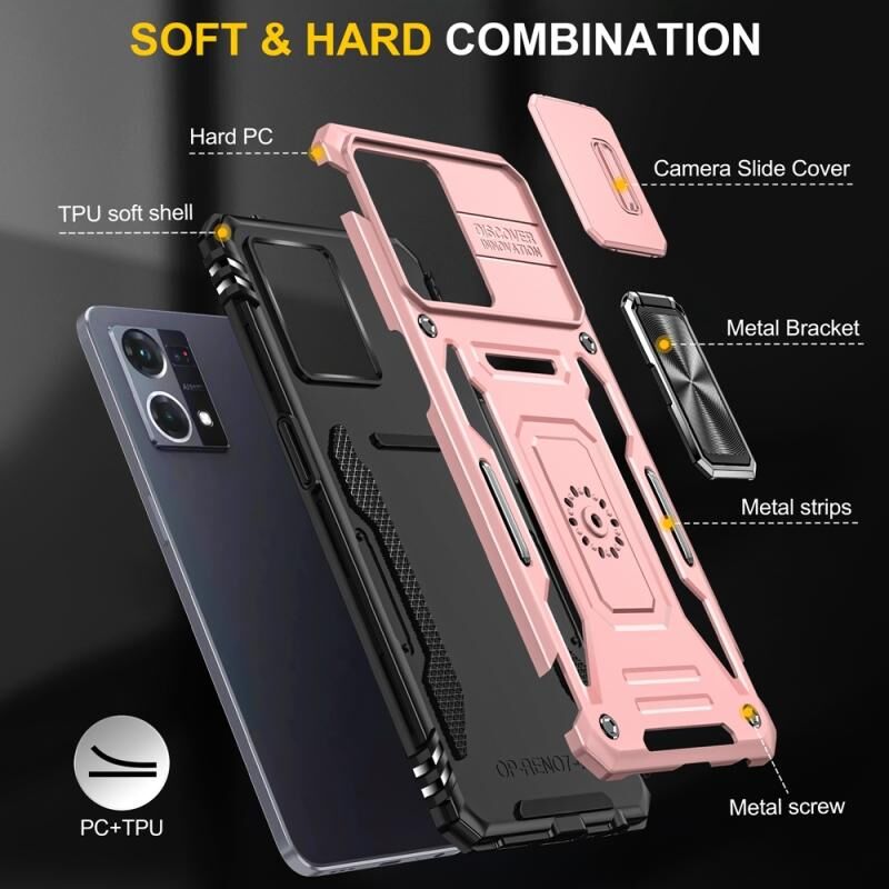 Για OPPO Reno7 4G Armor PC + TPU κάμερα ασπίδα τηλέφωνο υπόθεση (Ροζ χρυσός)