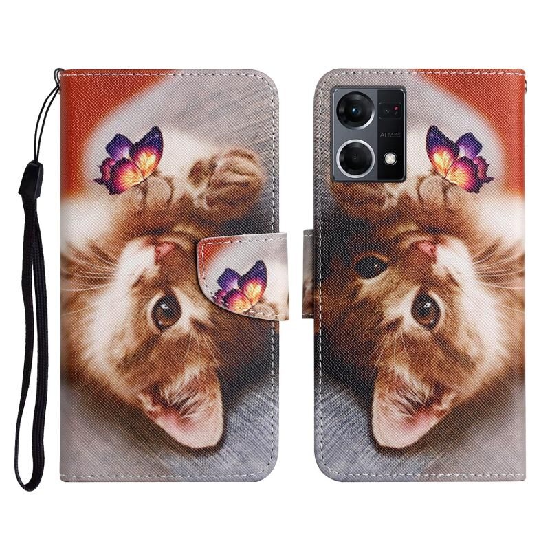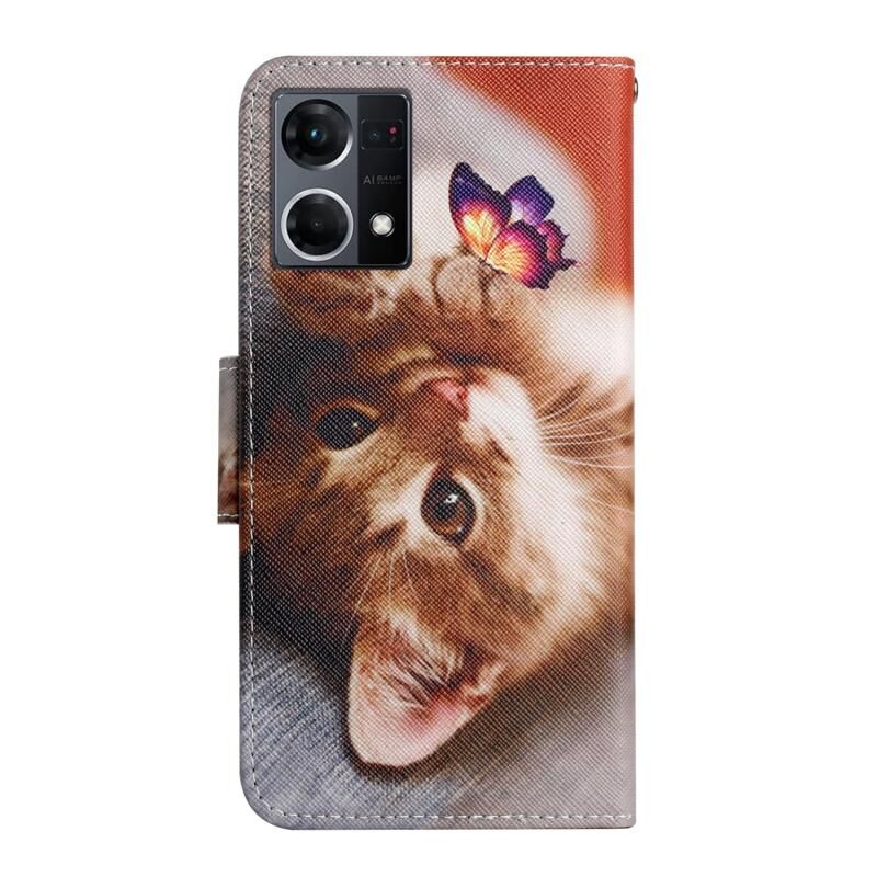Θήκη τηλεφώνου από δέρμα με σχέδιο πολύχρωμης ζωγραφικής για OPPO Reno7 4G (Κόκκινο)