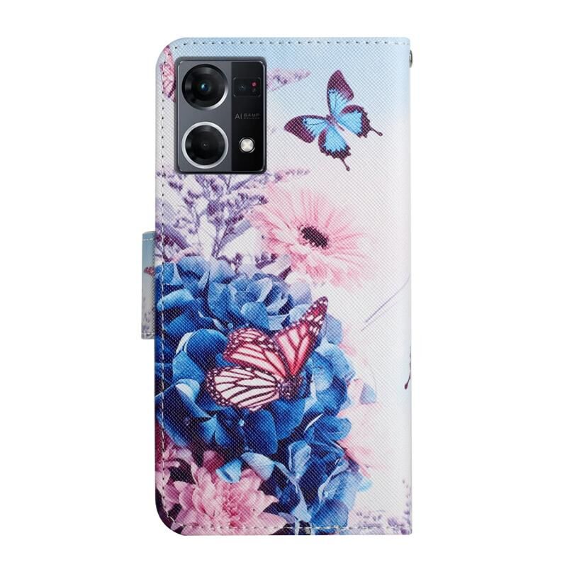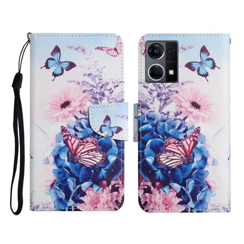 Θήκη τηλεφώνου από δέρμα με σχέδιο πολύχρωμης ζωγραφικής για OPPO Reno7 4G (Πεταλούδα Μωβ)