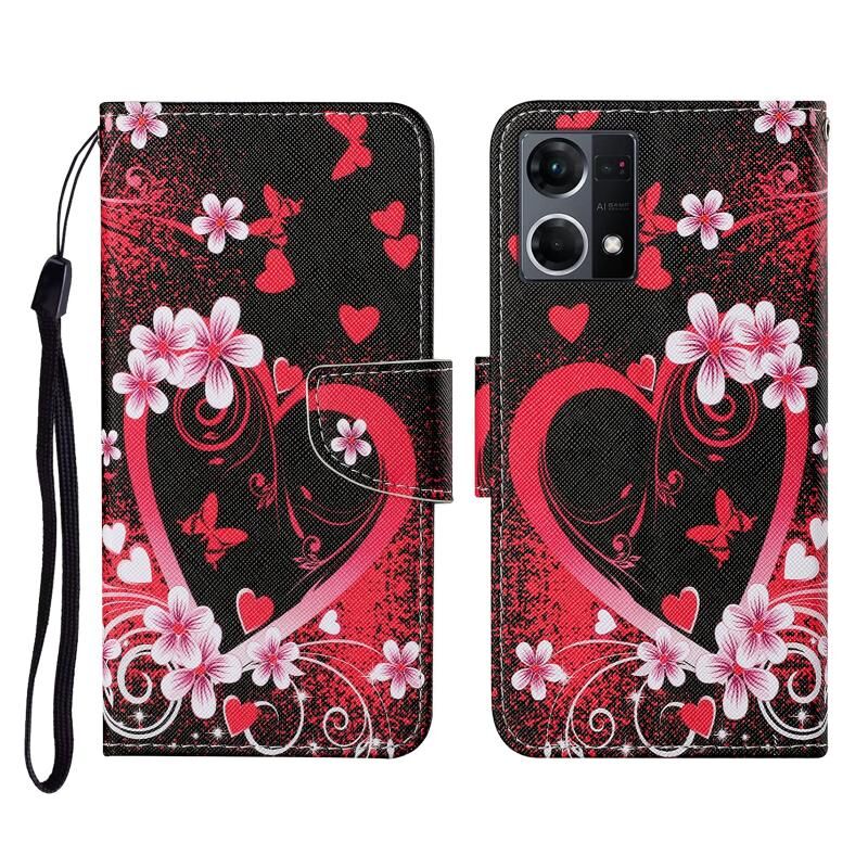 Θήκη τηλεφώνου από δέρμα με σχέδιο πολύχρωμης ζωγραφικής για OPPO Reno7 4G (Μαύρο Πεντάγραμμο)
