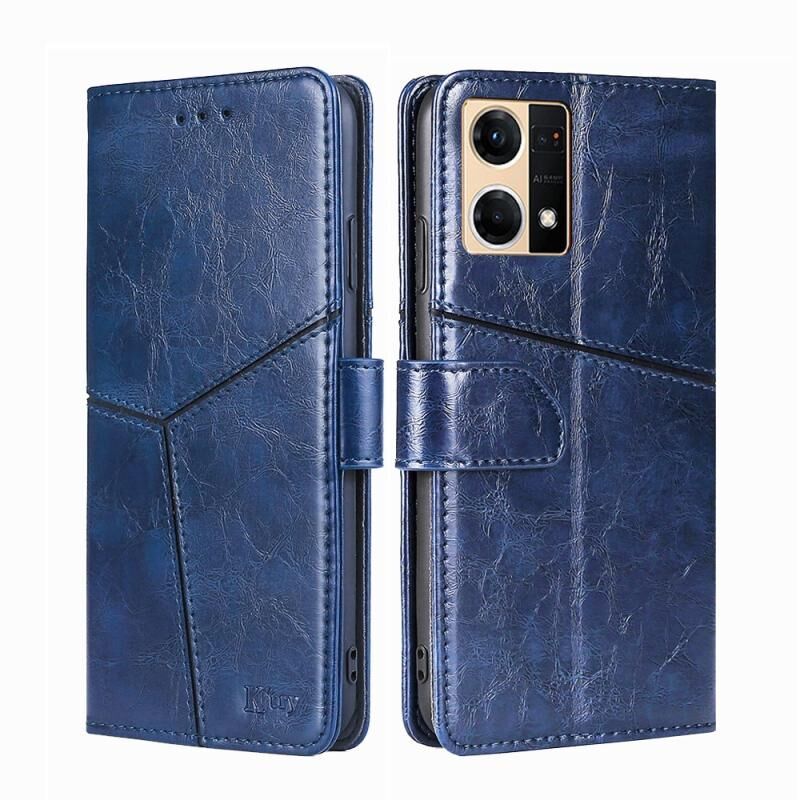 Για OPPO Reno7 4G / F21 Pro 4G γεωμετρική ραφή οριζόντια Flip δερμάτινη θήκη τηλεφώνου (Μπλε)