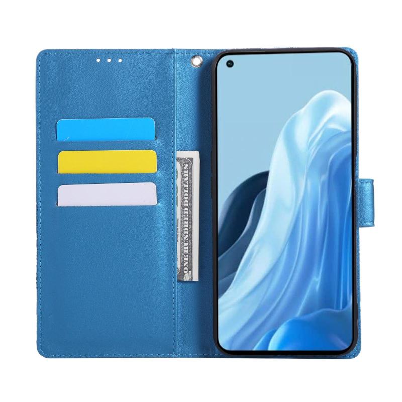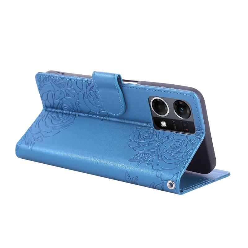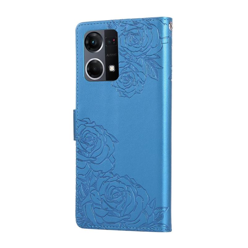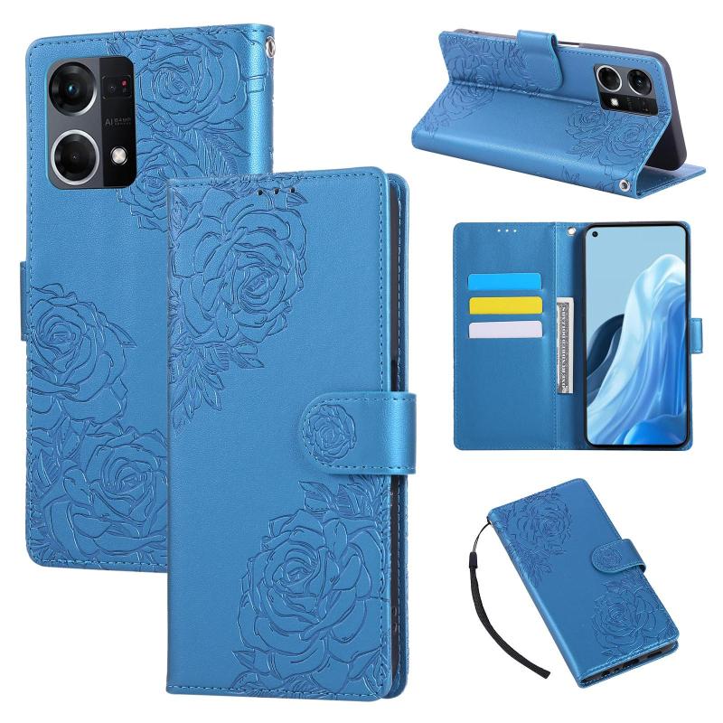 For OPPO Reno7 4G / F21 Pro 4G Rose Flower Embossed 3-Card Slots Leather Phone Case(Blue)