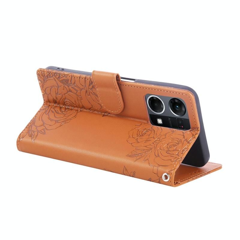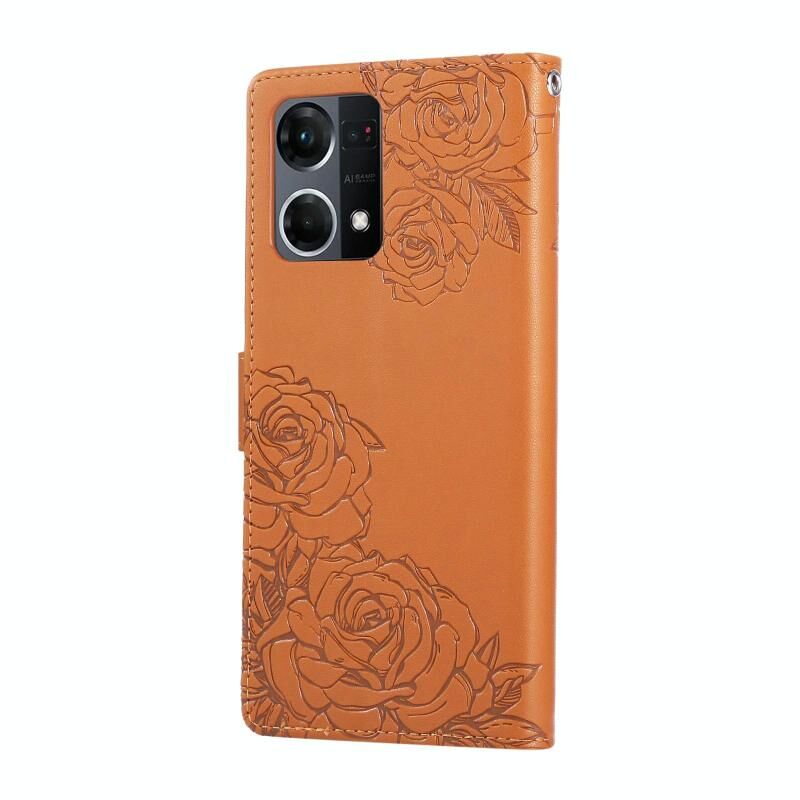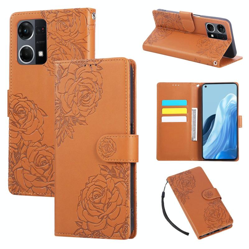 For OPPO Reno7 4G / F21 Pro 4G Rose Flower Embossed 3-Card Slots Leather Phone Case(Brown)