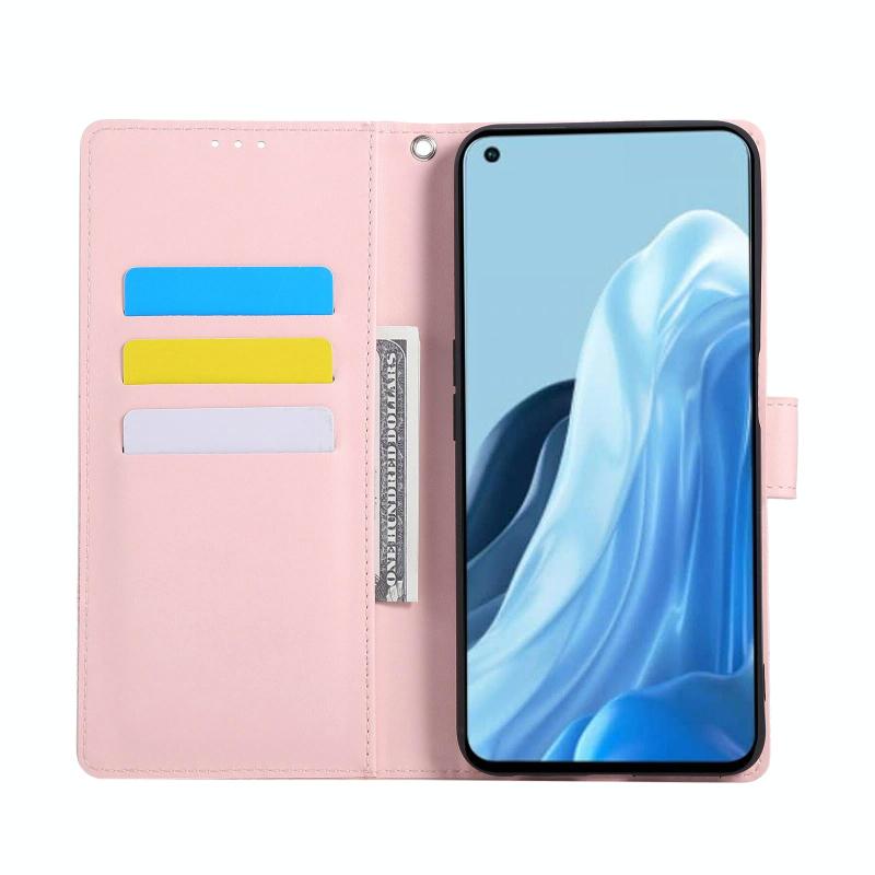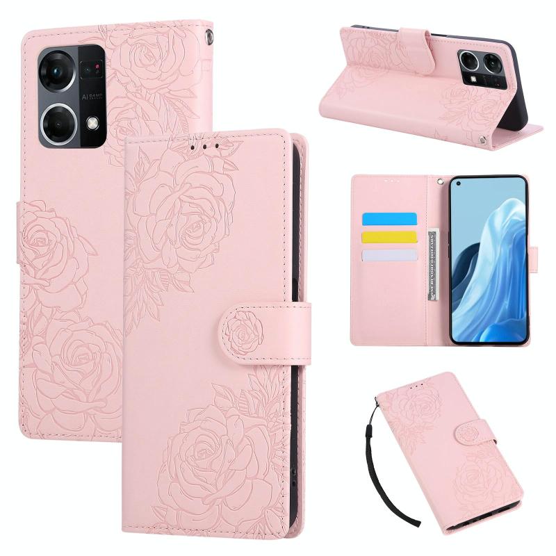 For OPPO Reno7 4G / F21 Pro 4G Rose Flower Embossed 3-Card Slots Leather Phone Case(Pink)
