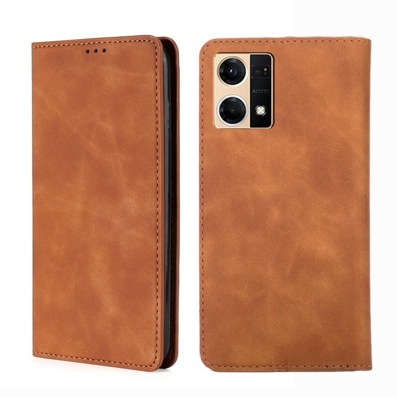 Για OPPO Reno7 4G / F21 Pro 4G δέρμα αίσθηση μαγνητική οριζόντια Flip δέρμα τηλέφωνο υπόθεση (Ανοιχτό καφέ)