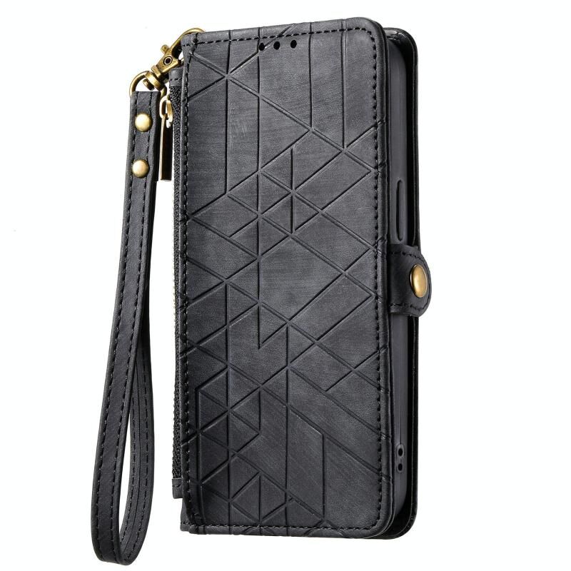 Θήκη τηλεφώνου δερμάτινη με φερμουάρ και πλευρική αγκράφα για OPPO Reno7 4G (Μαύρο)