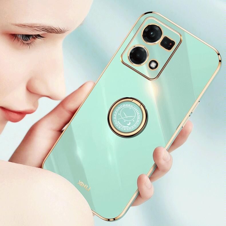 Για το OPPO Reno7 4G Global XINLI Εύθια άκρη 6D Ηλεκτρολυτική θήκη TPU τηλεφώνου με δακτύλιο στήριξης (Μέντας πράσινο)