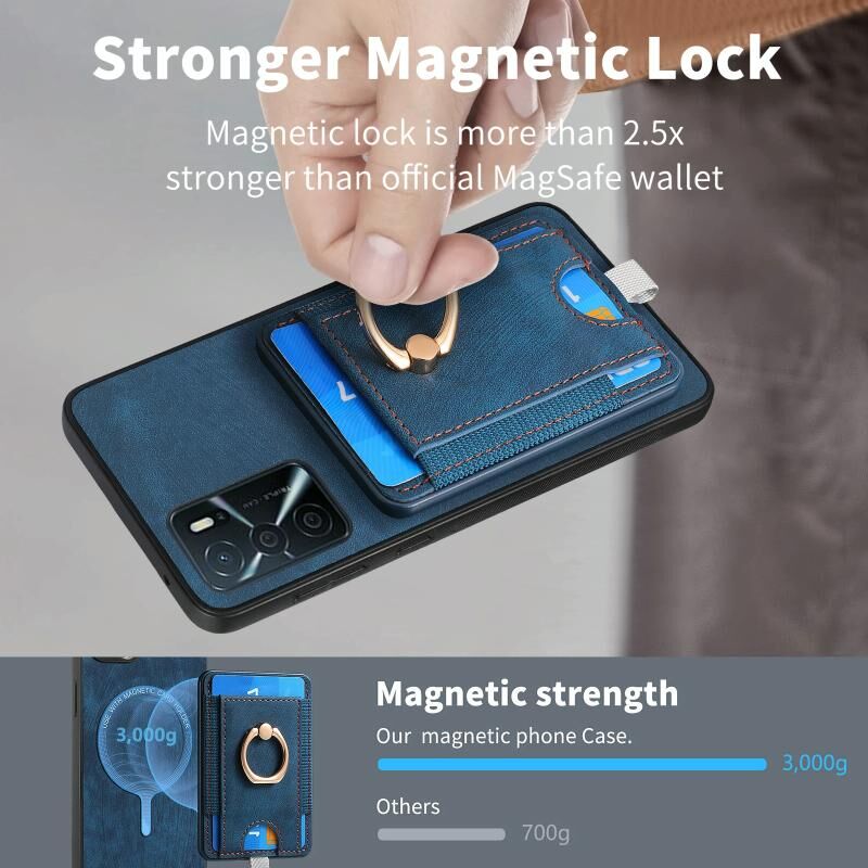 5. Το δερμάτινο πορτοφόλι διαθέτει ισχυρούς ενσωματωμένους μαγνήτες που του επιτρέπουν να κουμπώνει αβίαστα στη θέση του στο πίσω μέρος του τηλεφώνου σας, εύκολο στη χρήση και την αφαίρεση.