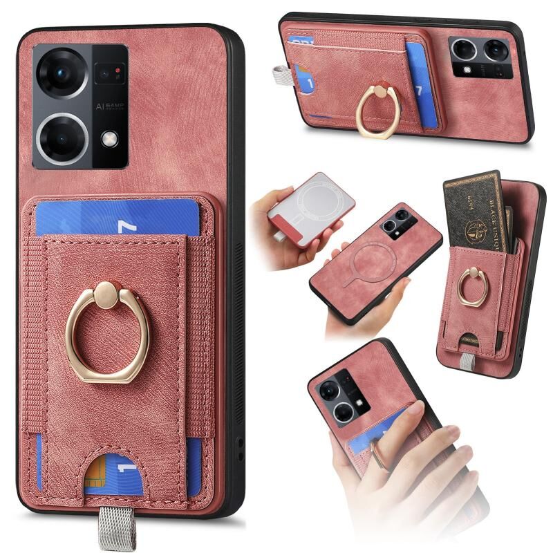 Για OPPO Reno7 4G Retro Splitable μαγνητική κάρτα τσάντα τσάντα δέρμα τηλέφωνο υπόθεση (ροζ)