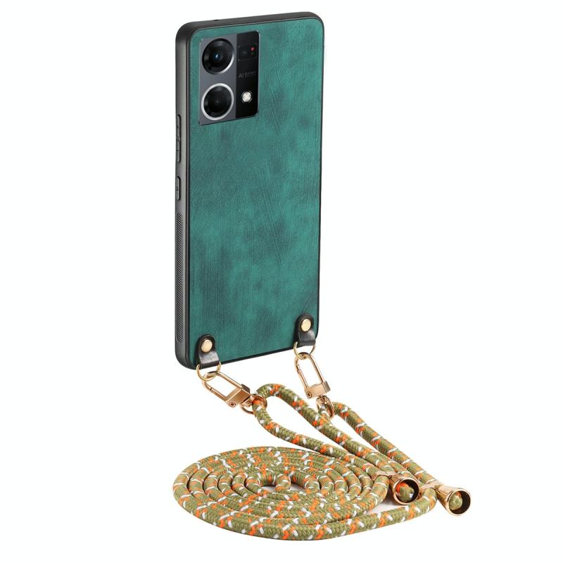 Θήκη κινητού τηλεφώνου OPPO Reno7 4G με δερμάτινη πλάτη PC σε vintage στυλ με λουρί crossbody (Καφέ)