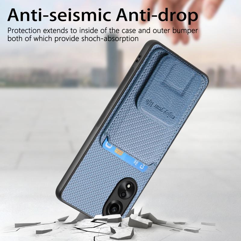 For OPPO Reno7 5G Carbon Fiber Card Bag Fold Stand Phone Case(Blue)