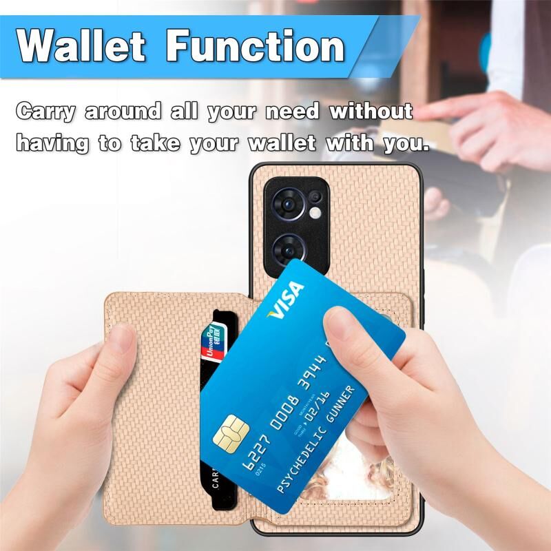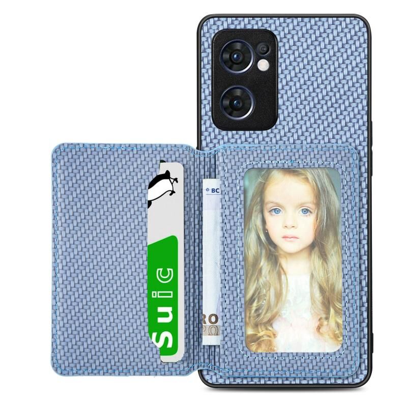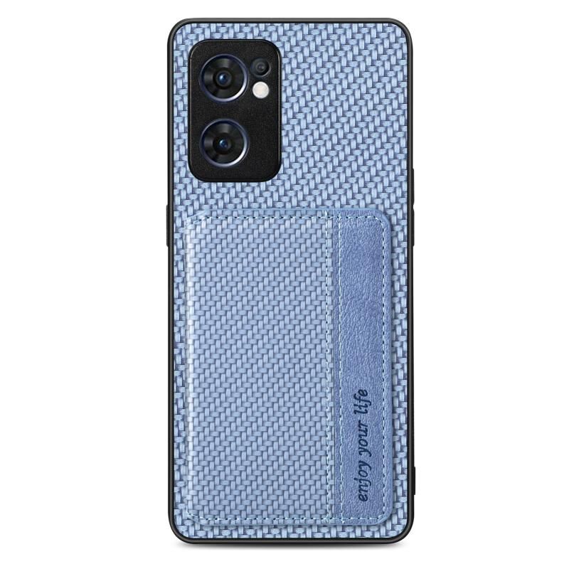 Για OPPO Reno7 5G Carbon Fiber Μαγνητική κάρτα τσάντα τηλέφωνο υπόθεση (Μπλε)