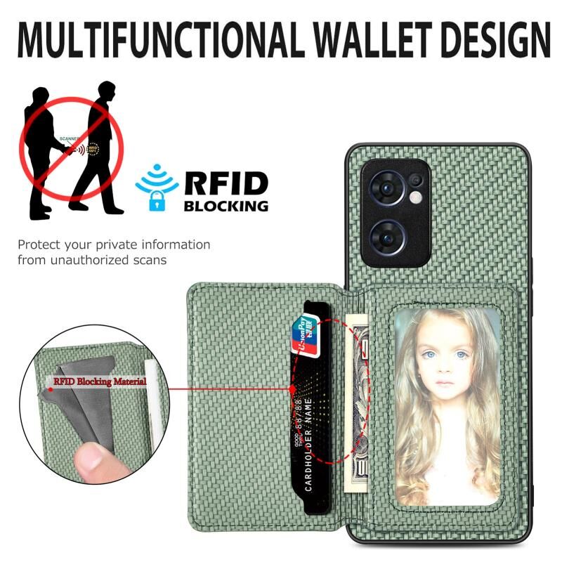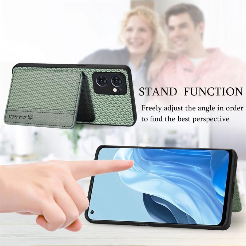 Για OPPO Reno7 5G Carbon Fiber Μαγνητική κάρτα τσάντα υπόθεση τηλεφώνου (Καφέ)