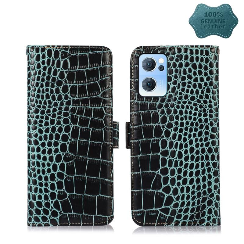 Θήκη τηλεφώνου από γνήσιο δέρμα μοσχαριού με επικάλυψη κροκόδειλου για OPPO Reno7 5G CN Version (πράσινο)