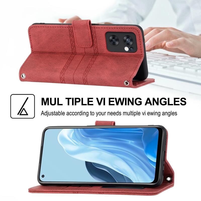 Για OPPO Reno7 5G ανάγλυφο ριγέ μαγνητική πόρπη οριζόντια Flip τηλέφωνο δερμάτινη θήκη (κόκκινο)