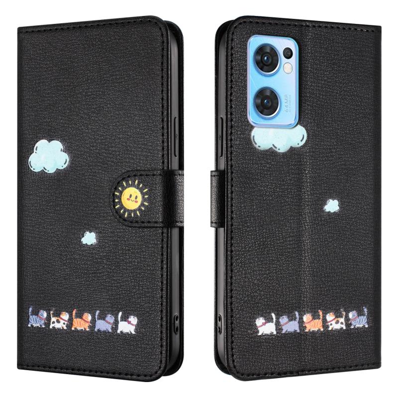 For OPPO Reno7 5G / Find X5 Lite Cartoon Cats Leather Phone Case(Black)