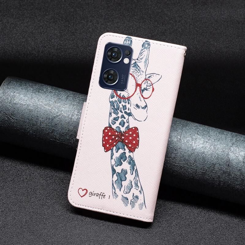 Θήκη τηλεφώνου από δέρμα με έγχρωμο σχέδιο (ελάφι) για OPPO Reno7 5G/Find X5 Lite (Κόκκινο)