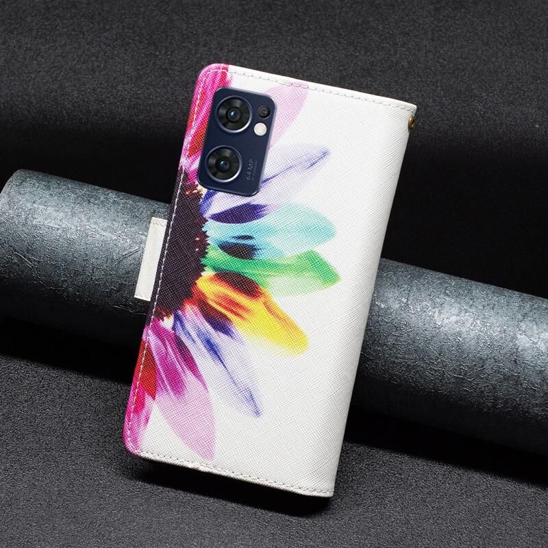 Για OPPO Reno7 5G/Find X5 Lite Θήκη τηλεφώνου δερμάτινη οριζόντια με φερμουάρ και σχέδιο ζωγραφικής (Κόκκινο)