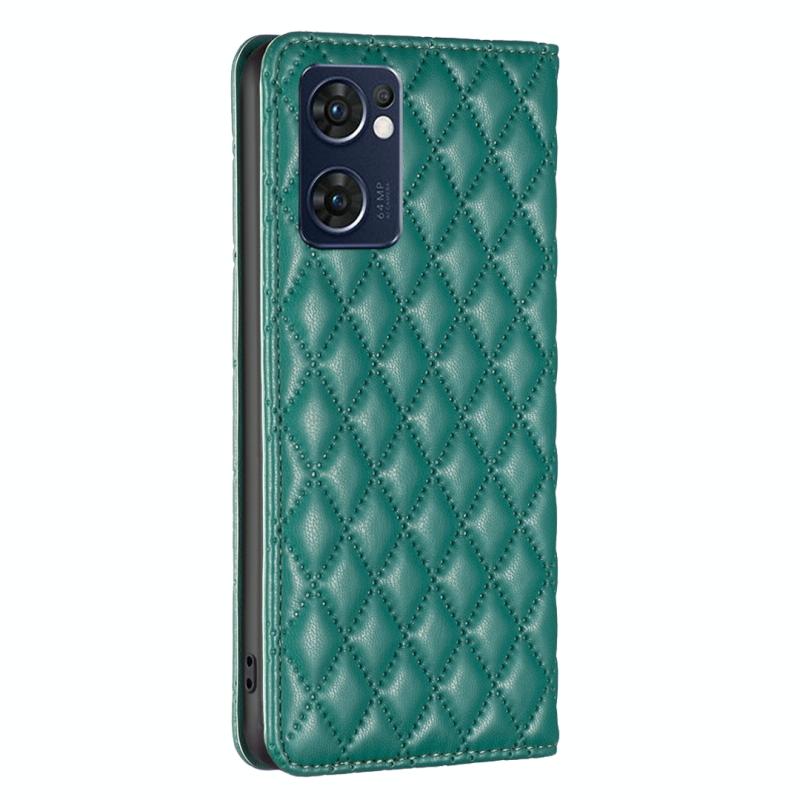 Θήκη τηλεφώνου τύπου flip από δέρμα με μαγνητικό σχέδιο διαμαντένιο πλέγμα για OPPO Reno7 5G / Find X5 Lite (πράσινο)