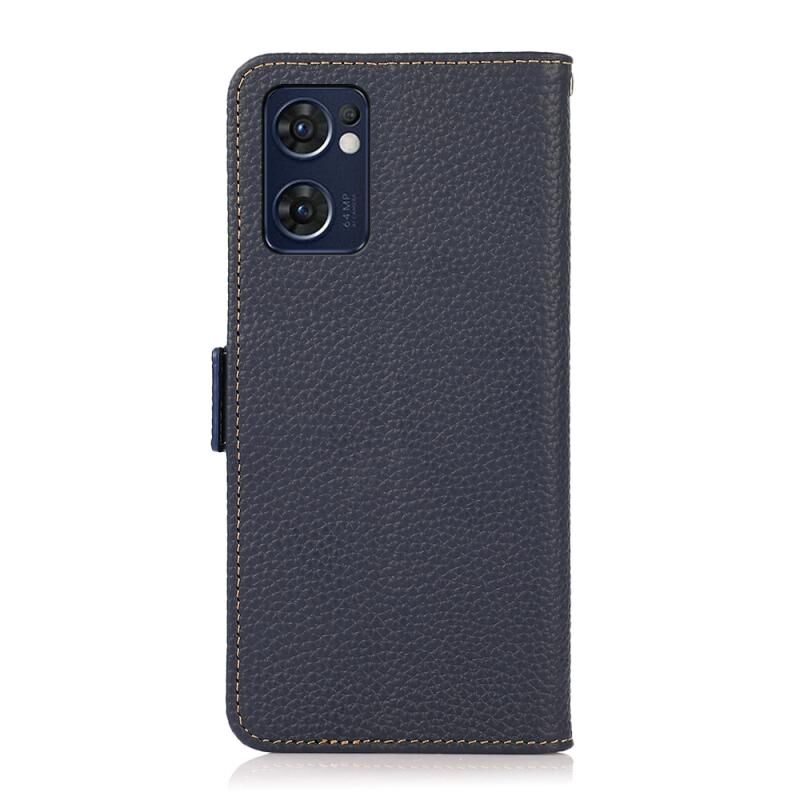 Θήκη τηλεφώνου KHAZNEH με μαγνητικό κλείσιμο στο πλάι, από γνήσιο δέρμα Litchi, με προστασία RFID για OPPO Reno7 5G / Find X5 Lite (Μαύρο)