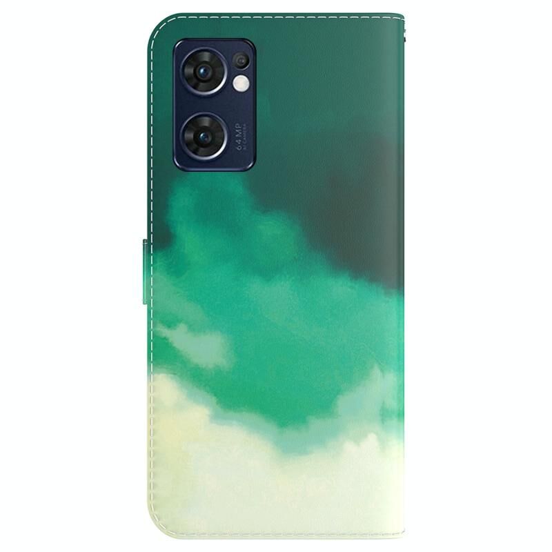 Για OPPO Reno7 5G ξένη έκδοση & Ταϊβάν έκδοση / Βρείτε X5 Lite νερομπογιά μοτίβο οριζόντια Flip δέρμα τηλέφωνο υπόθεση (Cyan Green)