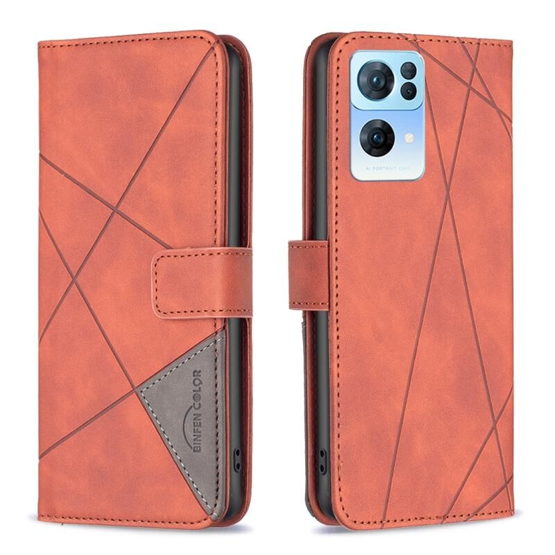 Για OPPO Reno7 5G Παγκόσμια BF05 μαγνητική πόρπη Rhombus υφή δερμάτινη θήκη τηλεφώνου (Καφέ)