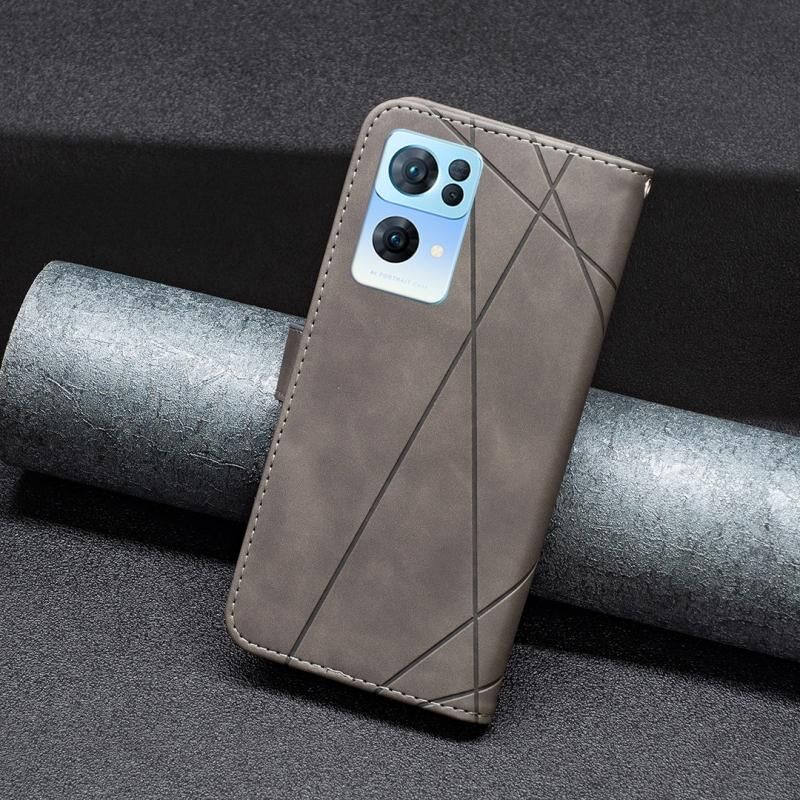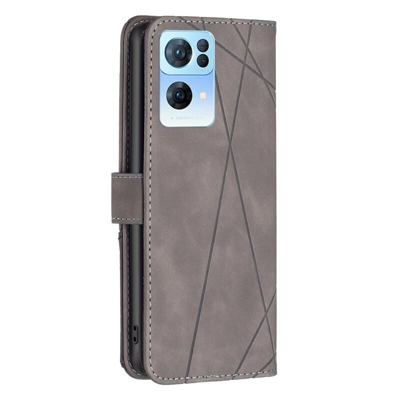 Για OPPO Reno7 5G Παγκόσμια BF05 μαγνητική πόρπη Rhombus υφή δερμάτινη θήκη τηλεφώνου (Γκρι)