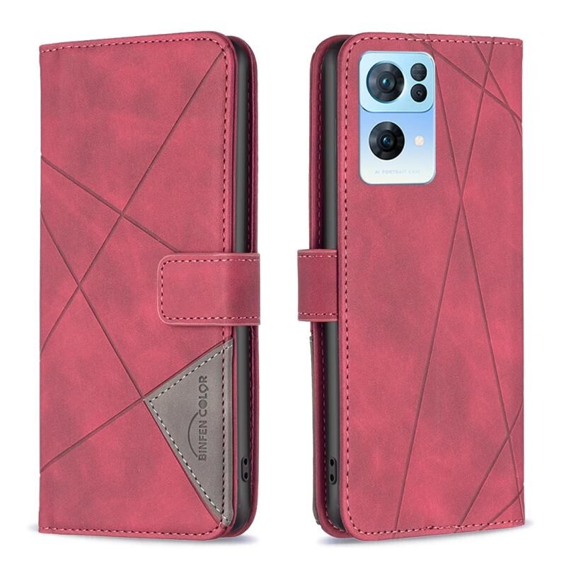 Για OPPO Reno7 5G Παγκόσμια BF05 μαγνητική πόρπη Rhombus υφή δερμάτινη θήκη τηλεφώνου (Κόκκινο)