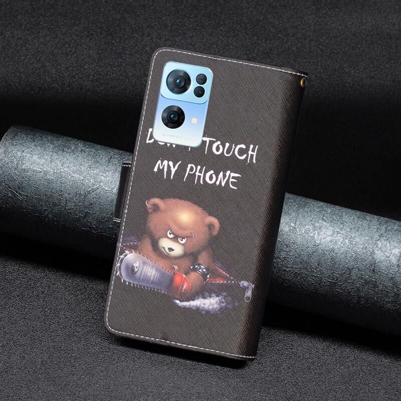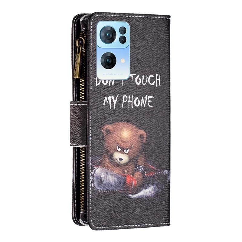 Θήκη τηλεφώνου δέρματινου οριζόντιου τύπου με φερμουάρ και πολύχρωμο σχέδιο για OPPO Reno7 5G (Αρκούδα)