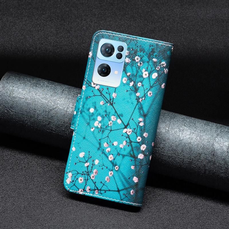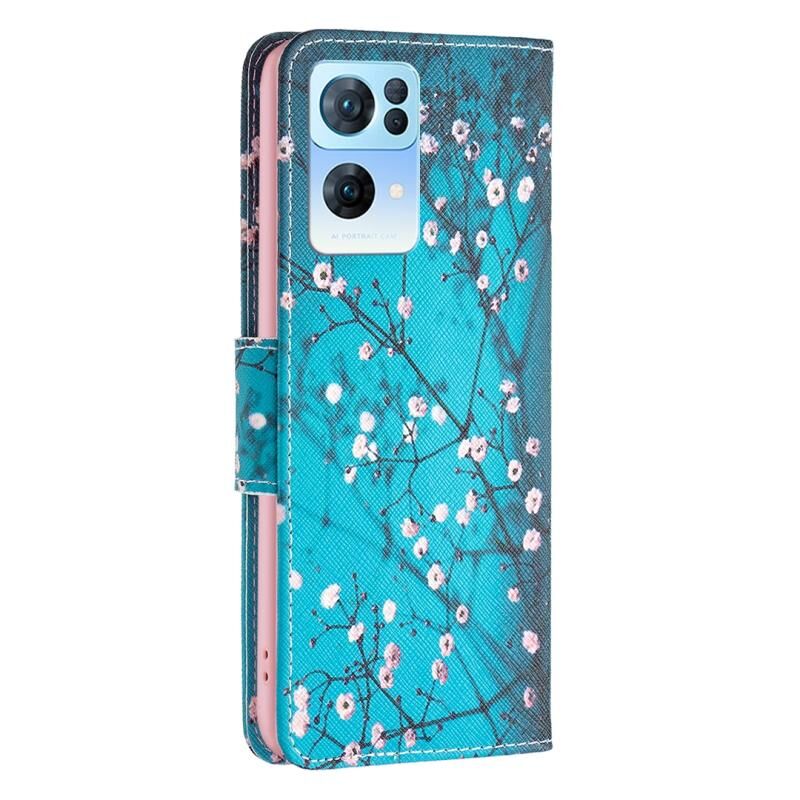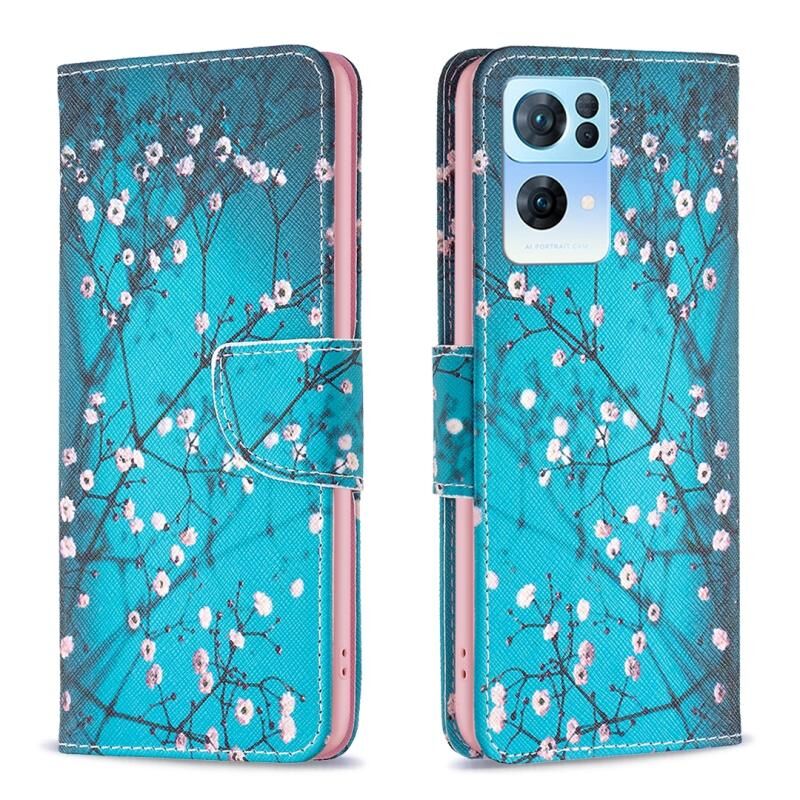 Θήκη τηλεφώνου από δέρμα με σχέδιο σχεδίασης για OPPO Reno7 5G Global (Λουλούδι Δαμασκηνιάς)