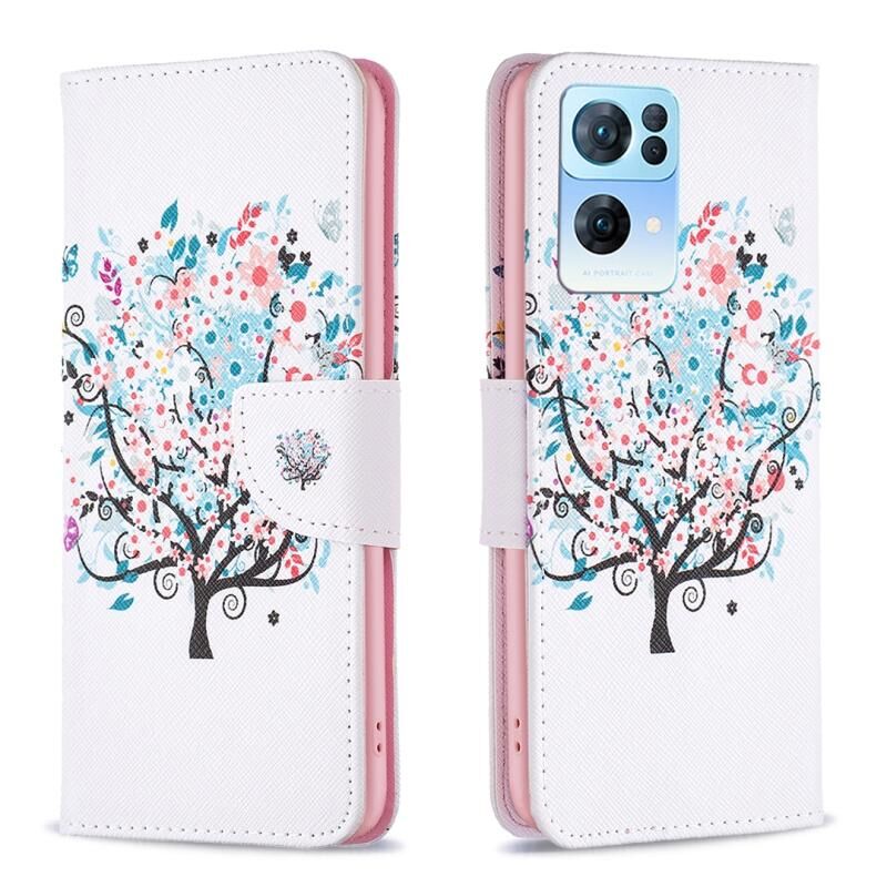 Θήκη τηλεφώνου από δέρμα με σχέδιο δέντρου για OPPO Reno7 5G Global (Σχέδιο)