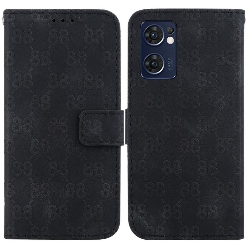Θήκη τηλεφώνου από δέρμα με ανάγλυφο διπλό σχέδιο σε σχήμα 8 για OPPO Reno7 5G Global / Find X5 Lite (Μαύρο)