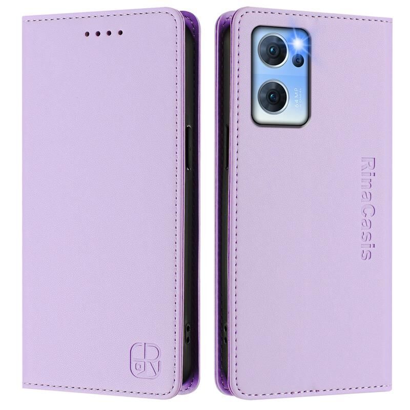 Θήκη τηλεφώνου από δέρμα με μαγνητική απορρόφηση και προστασία RFID, διπλωμένη δύο φορές για OPPO Reno7 5G Global / Find X5 Lite RC01 (ανοιχτό μωβ)