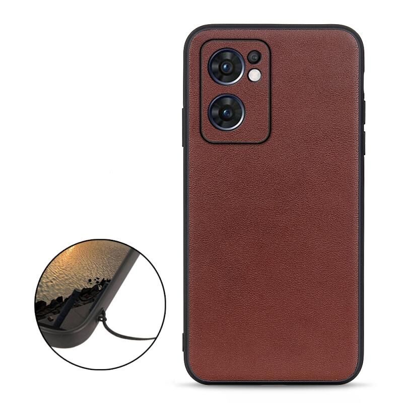 Θήκη τηλεφώνου από γνήσιο δέρμα αρνιού με ακριβείς οπές και υφή για OPPO Reno7 5G International (Καφέ)