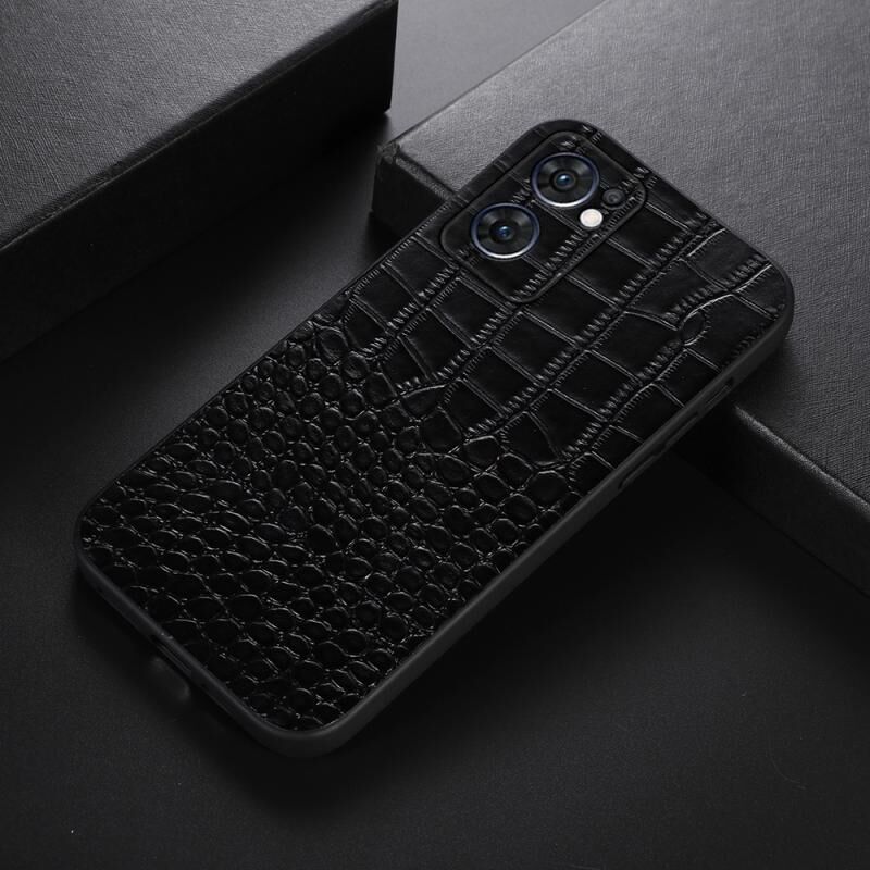 Θήκη τηλεφώνου από γνήσιο δέρμα με υφή κροκόδειλου για OPPO Reno7 5G Διεθνή Έκδοση / Find X5 Lite (Μαύρο)