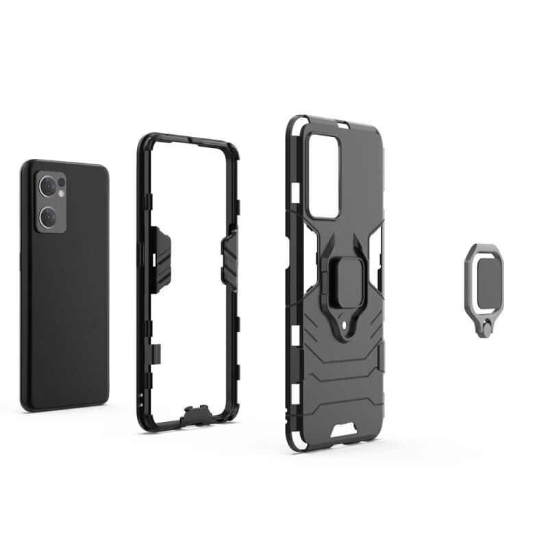 Για OPPO Reno7 5G Διεθνής έκδοση Shockproof PC + TPU Προστατευτική θήκη τηλεφώνου με μαγνητικό δαχτυλίδι κάτοχος (Navy Blue)