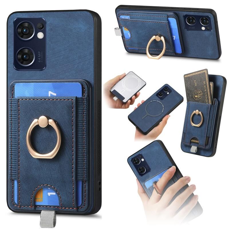 Για OPPO Reno7 5G Retro Splitable μαγνητική τσάντα κάρτα τσάντα δέρμα τηλέφωνο υπόθεση (μπλε)