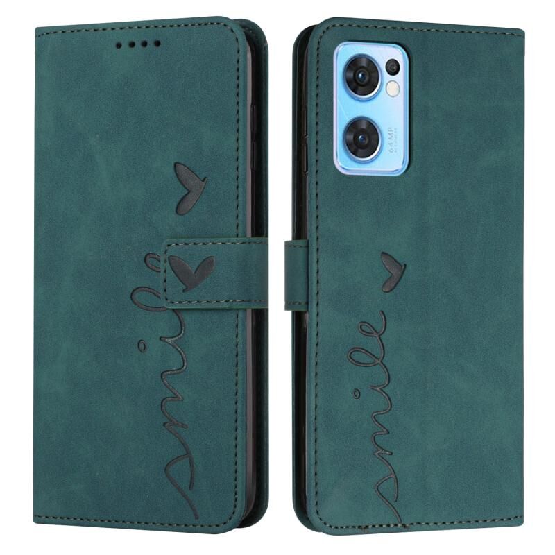 Για OPPO Reno7 5G δέρμα αίσθηση καρδιά μοτίβο δερμάτινο τηλέφωνο υπόθεση (πράσινο)