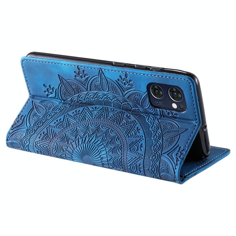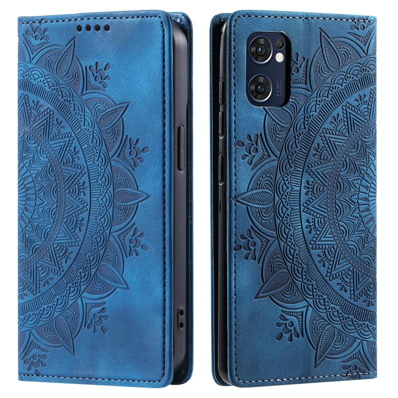 For OPPO Reno7 5G Totem Embossed Magnetic Leather Phone Case(Blue)